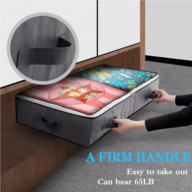 Foldable Underbed Bag -Blanket Clothes Quilt Organizer Breathable Zipper Storage Bag for Bedroom